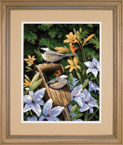 Dimensions© siuvinėjimo (needlepoint) rinkinys "Chickadees & Lilies".